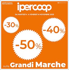 In questa sezione troverai sempre tutti i volantini dei nostri negozi (Ipercoop, Bruno Elettrodomestici, BricoCenter, Toys Planet e tanti altri ancora...) con le ultimissime offerte piene di sconti e di vantaggi per uno shopping sempre conveniente.