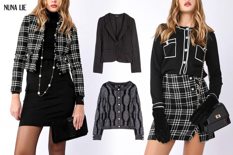 Nero su pantaloni gessati o in tessuto stretch, a zampa o a sigaretta; nero su gonne in tweed ma anche in similpelle o su pencil skirt super aderenti; nero ancora su camicie, giacche, abitini a uovo e cappottini bon ton.